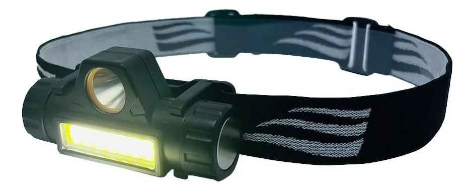 Ela conta com faixa elástica ajustável que mantém a lanterna presa na estrutura.
