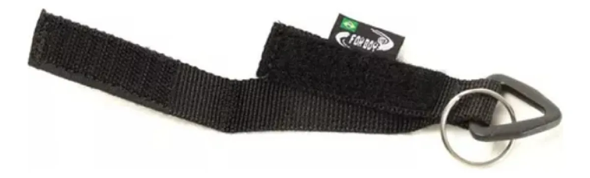 é confeccionado em fita de polipropileno e possui fecho em velcro para uma fácil abertura. Em sua ponta, conta com um triângulo de polímero e uma argola de metal para segurar as chaves de algema.